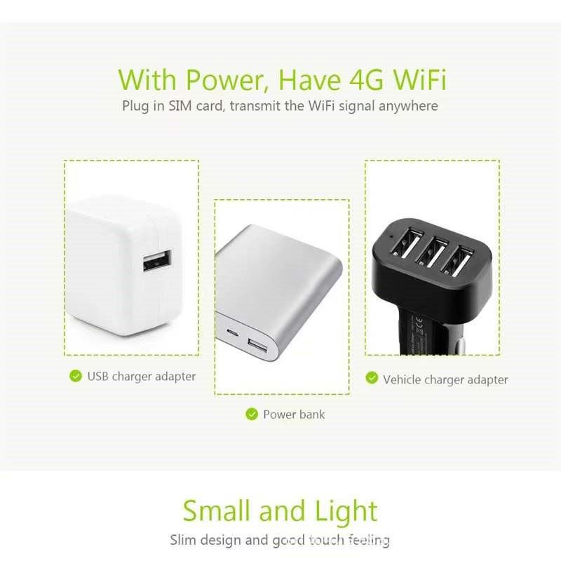 * การแชร์การเชื่อมต่ออินเทอร์เน็ตผู้ใช้สูงสุด 10 คนสามารถเข้าถึงเครือข่าย Wi-Fi ได้ในเวลาเดียวกัน ไม่จําเป็นต้องติดตั้งซอฟต์แวร์ (โหมด WiFi) ทํางานกับแหล่งจ่ายไฟภายนอกไม่มีเวลาทํางาน ที่ จํากัด